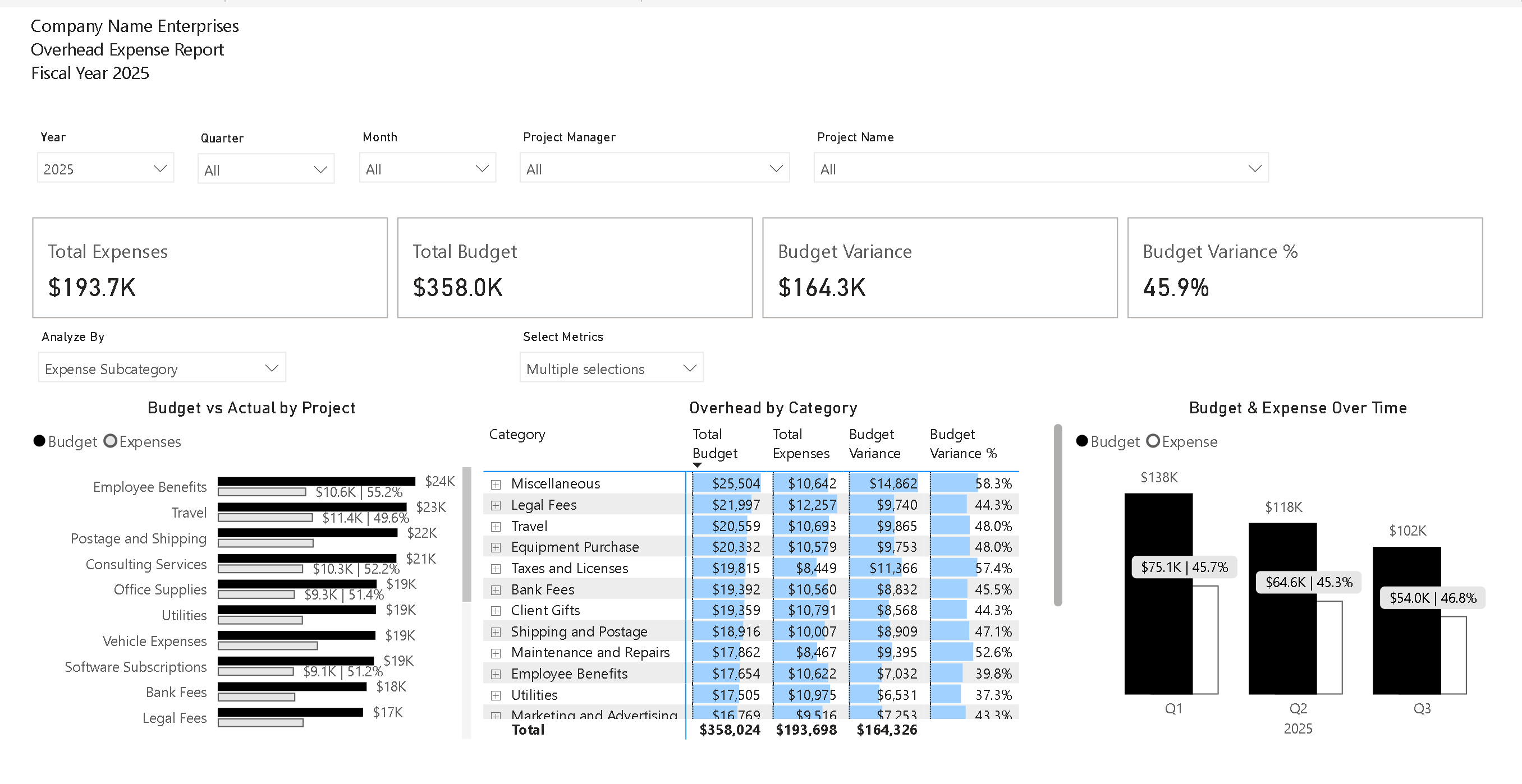 - ✓ Dynamic KPIs (Total Expenses, Budget, Variance)